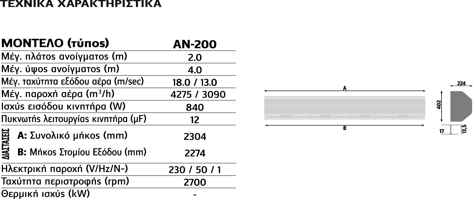 Η σειρά "ANEMOESSA" είναι μια οικογένεια απλών αεροκουρτινών για ύψος πόρτας έως 4 μέτρα. Το κέλυφος κατασκευάζεται από γαλβανιζέ λαμαρίνα λευκού χρώματος RAL9010.