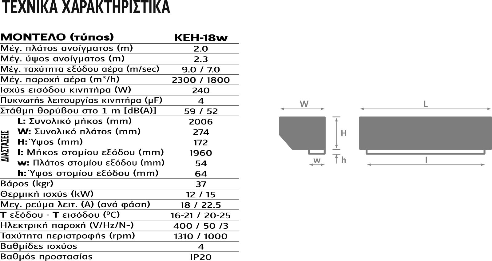 Αεροκουρτίνα θερμαινόμενη 12kw για άνοιγμα πόρτας 2m και για ύψος πόρτας εώς 2,5m
