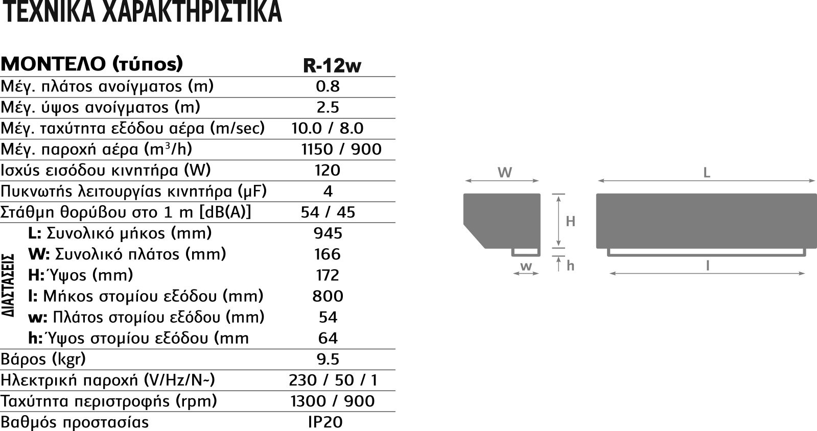 Δυνατότητες αεροκουρτίνας Δ-12w CB: